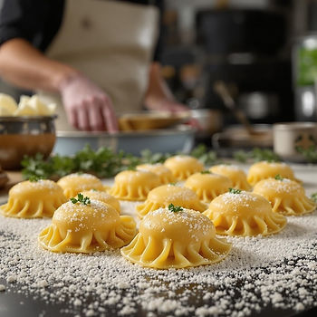 "So this is anolini alpini. The filling is roasted porcini, a little bit of shallot, robiola, parmigiano, and a little ricotta. We were in the mountains of Calgary, and I think that was one of the most important challenges. It built a lot of confidence for me. Now we are in North Italy near the Alps, and porcinis are in season. So I felt like absolutely have to use porcinis."