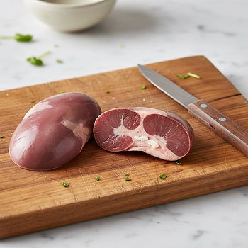 (Marcus): "We've got the venison loin. No fat, no sinew. You've got to be very careful that when you're colouring it that you don't overheat it. You don't want it to dry out. Kidney, take off the membrane, saute it off nice and quickly. Serve it nice and pink. Kidney cookery is very hard to get right in the kitchen with this much pressure."