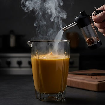 {Charlie}: "I'm pumping the smoke into the puree as it's blending, get that flavour right into the puree, so it's really strong."