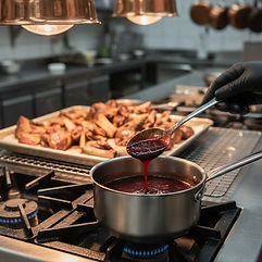 (Monica): "He's roasting off the bones, and he's making a really strong reduction of port and redcurrant to add to that."