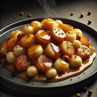 Kristen Kish: "For today's quick fire challenge, you all are going to put your own spin on this Canadian classic. You can take your poutine in any direction you'd like, but it must include a starchy vegetable base, a sauce, and a cheese, of course. You have 30 minutes on the clock to show us your poutine. Your time starts right now."