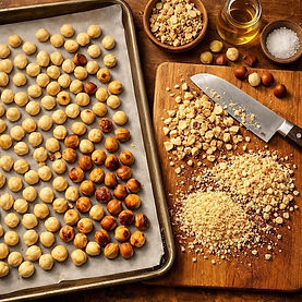 Preheat oven to 350°F (180°C). Spread hazelnuts on a baking sheet and toast for 8-10 minutes until golden and fragrant. Watch carefully—they can burn quickly. Cool completely.