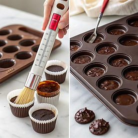 9. Carefully unmold dark chocolate cups by gently flexing molds (cups should release easily if properly tempered).