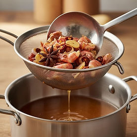 Strain the broth through a fine-mesh sieve set over a clean saucepan. Use the back of a ladle or a large spoon to press firmly on the solids, crushing the shells and squeezing the aromatics to extract every drop of liquid and flavor. The strained broth should be deeply aromatic and a rich amber-gold color. Discard the solids.